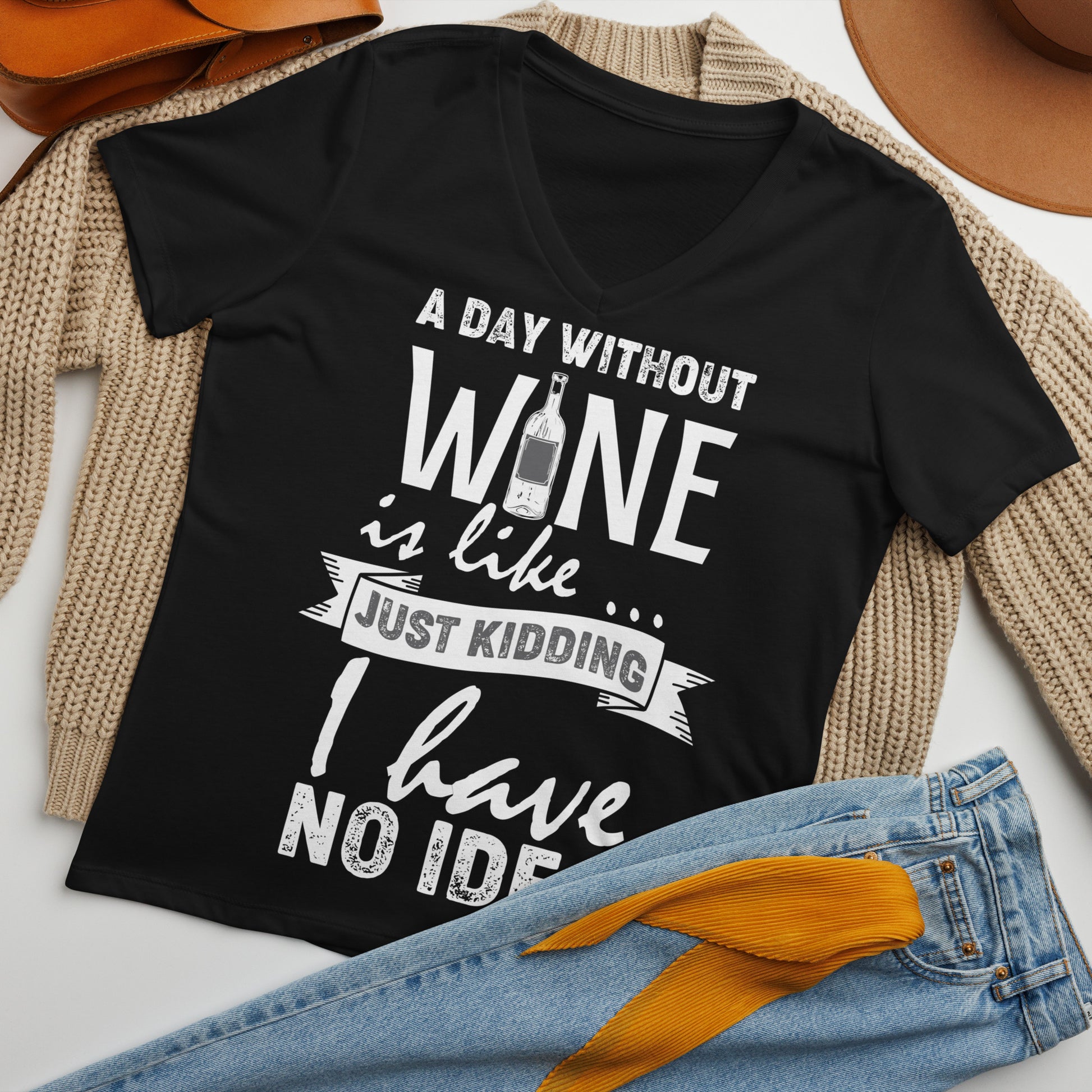 A Day Without Wine is Like...Just Kidding I have No Idea Women’s V-neck t-shirt