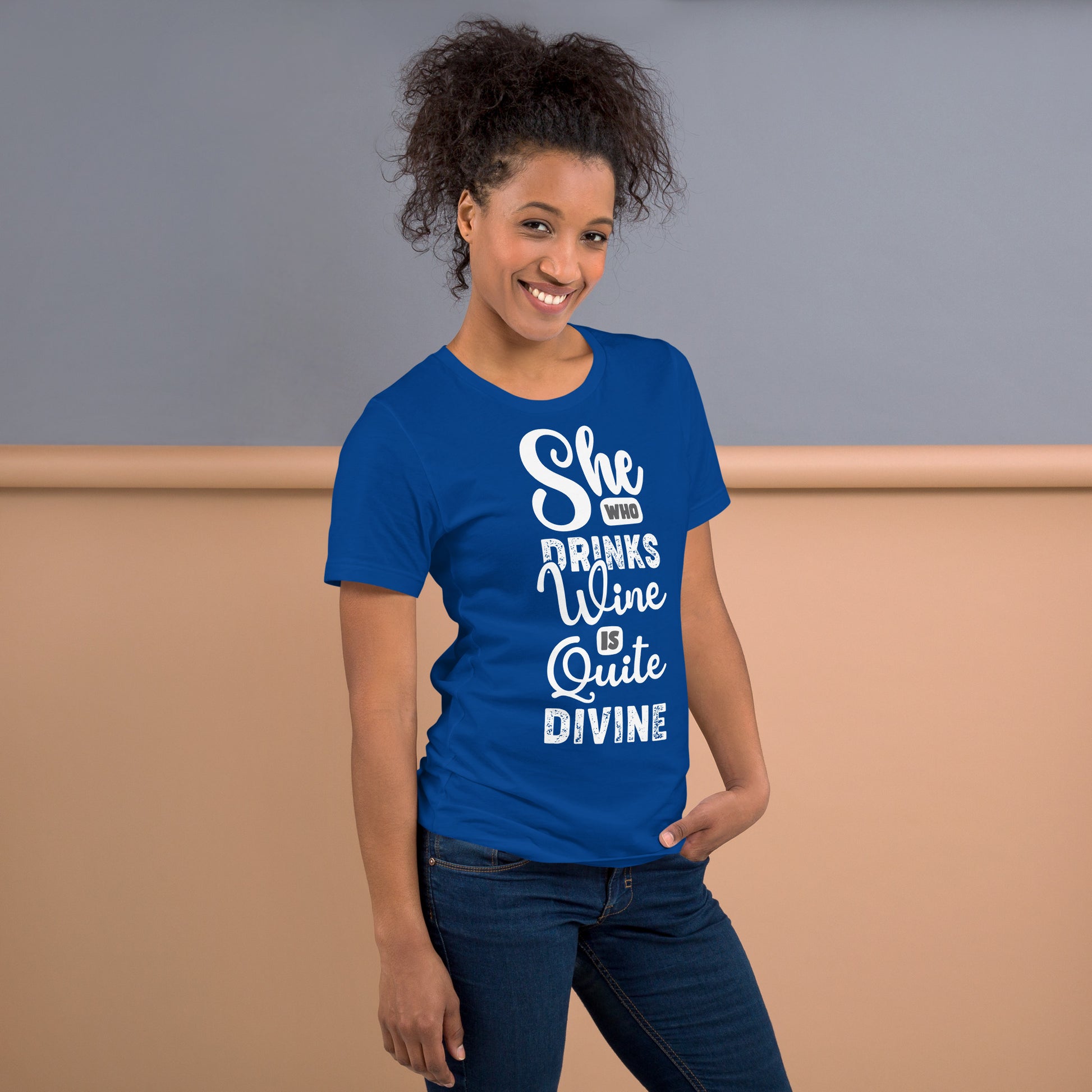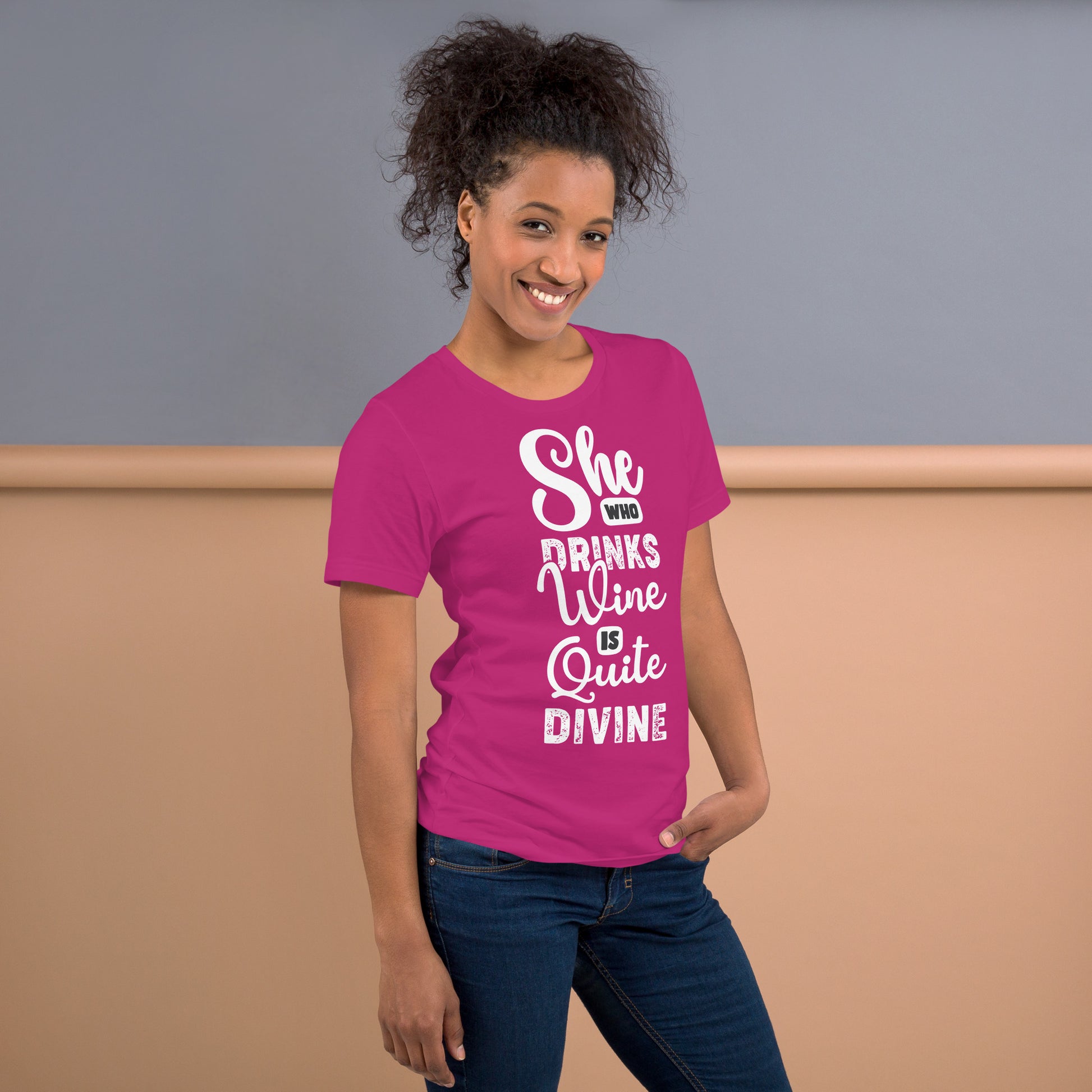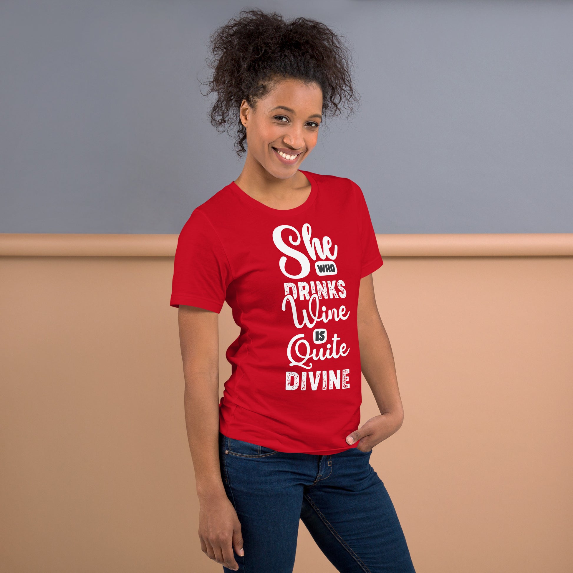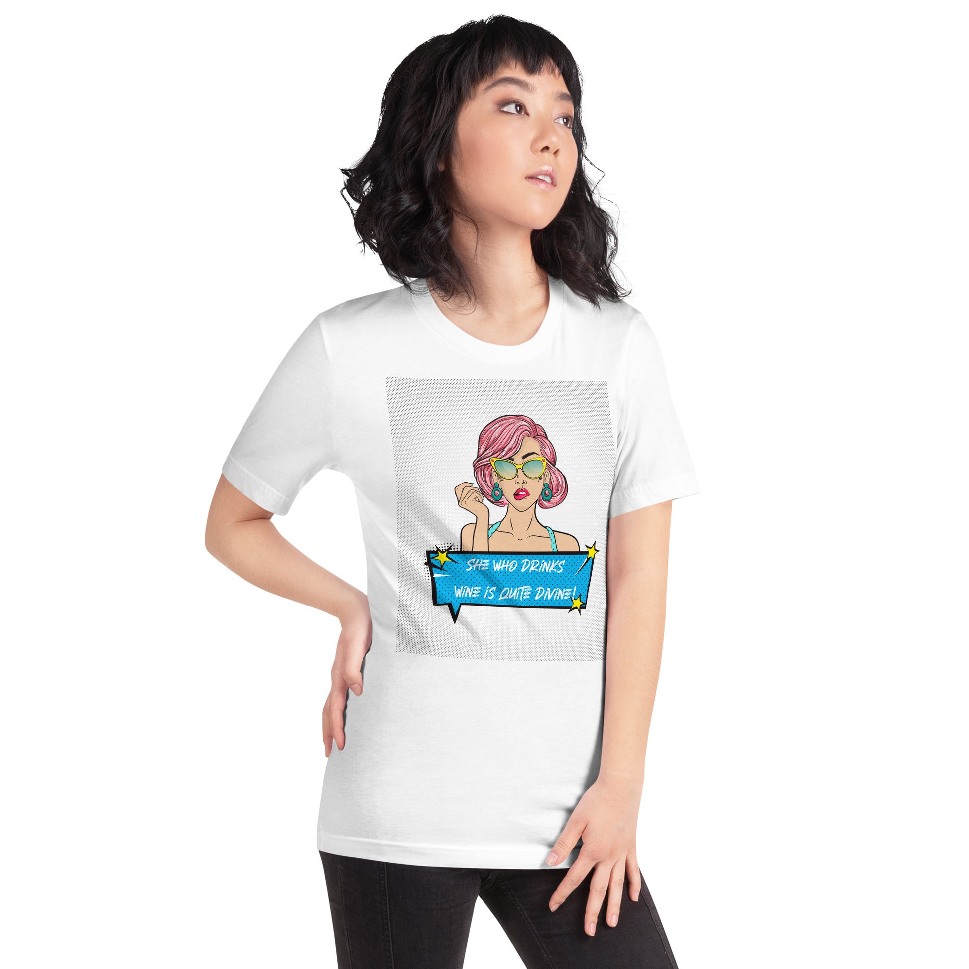 She Who Drinks Wine is Quite Divine Pop Art Women's T-shirt