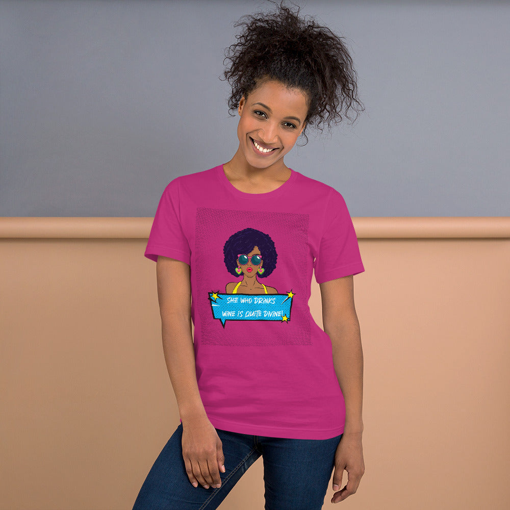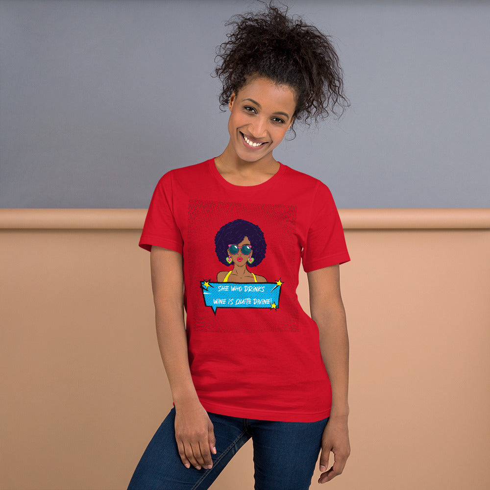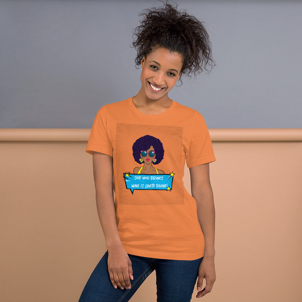 She Who Drinks Wine is Quite Pop Art AA Divine Woman T-shirt
