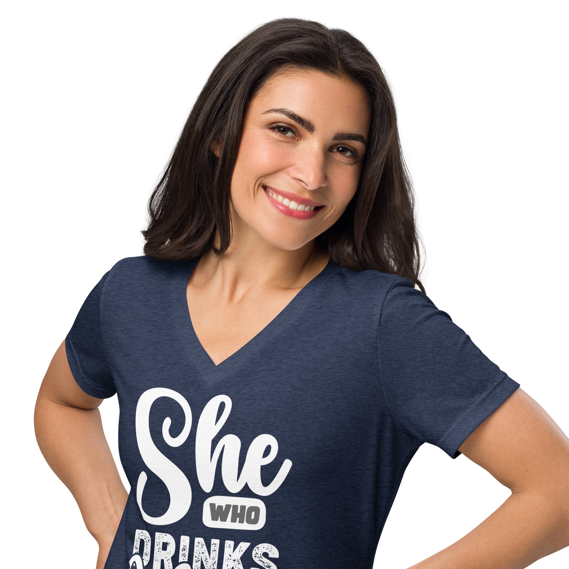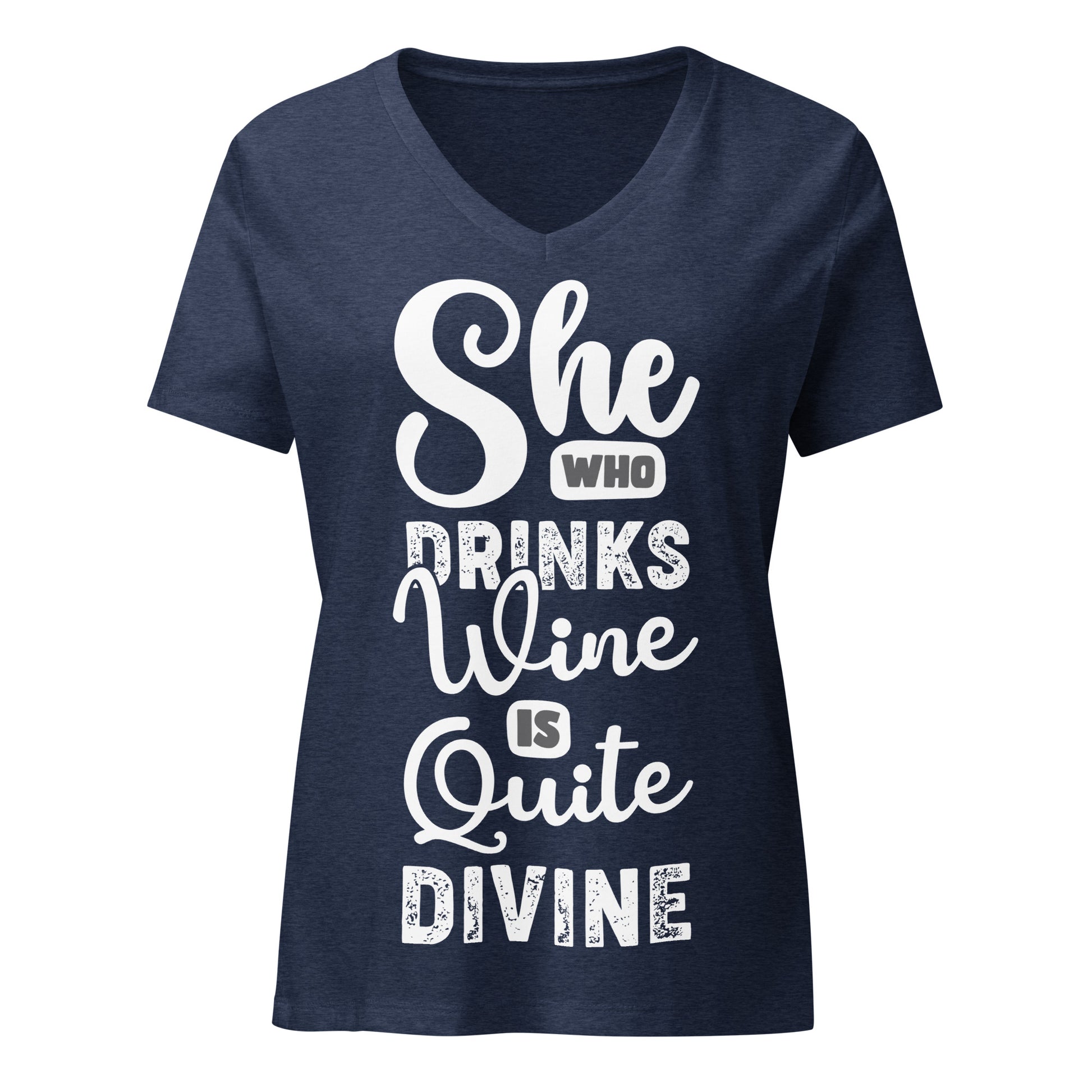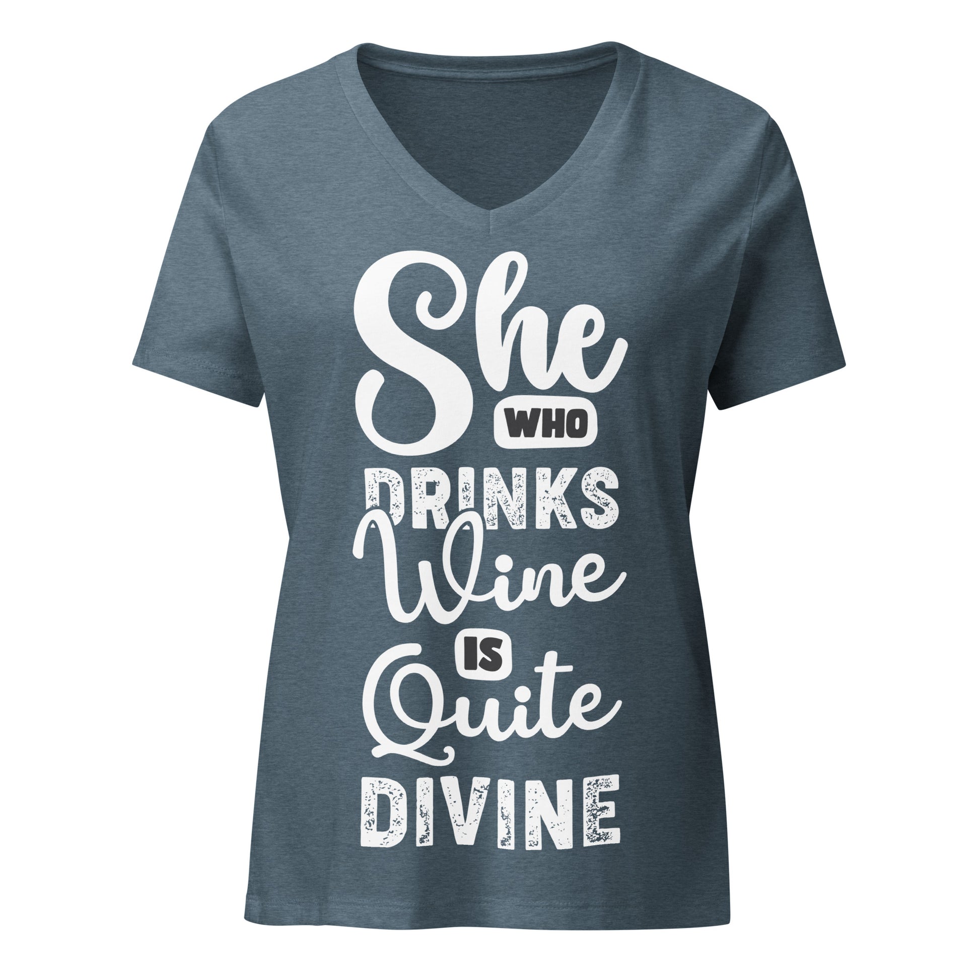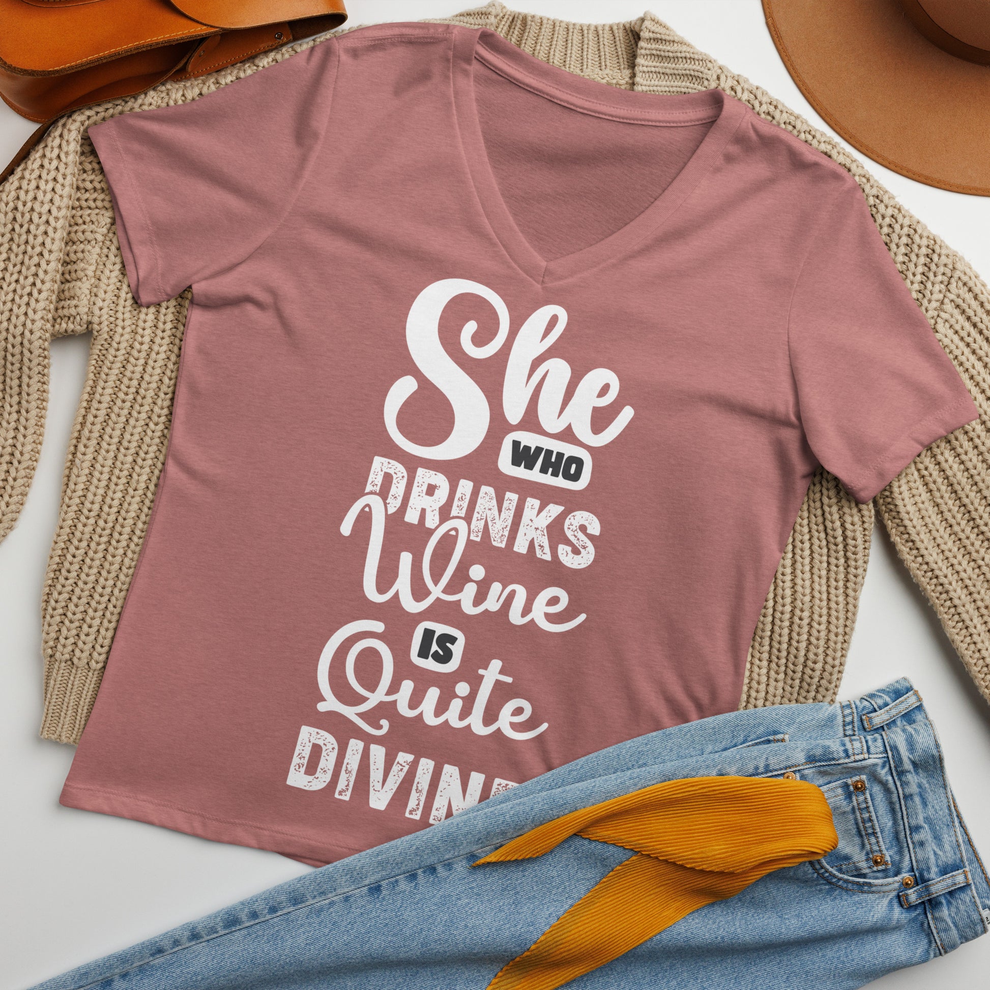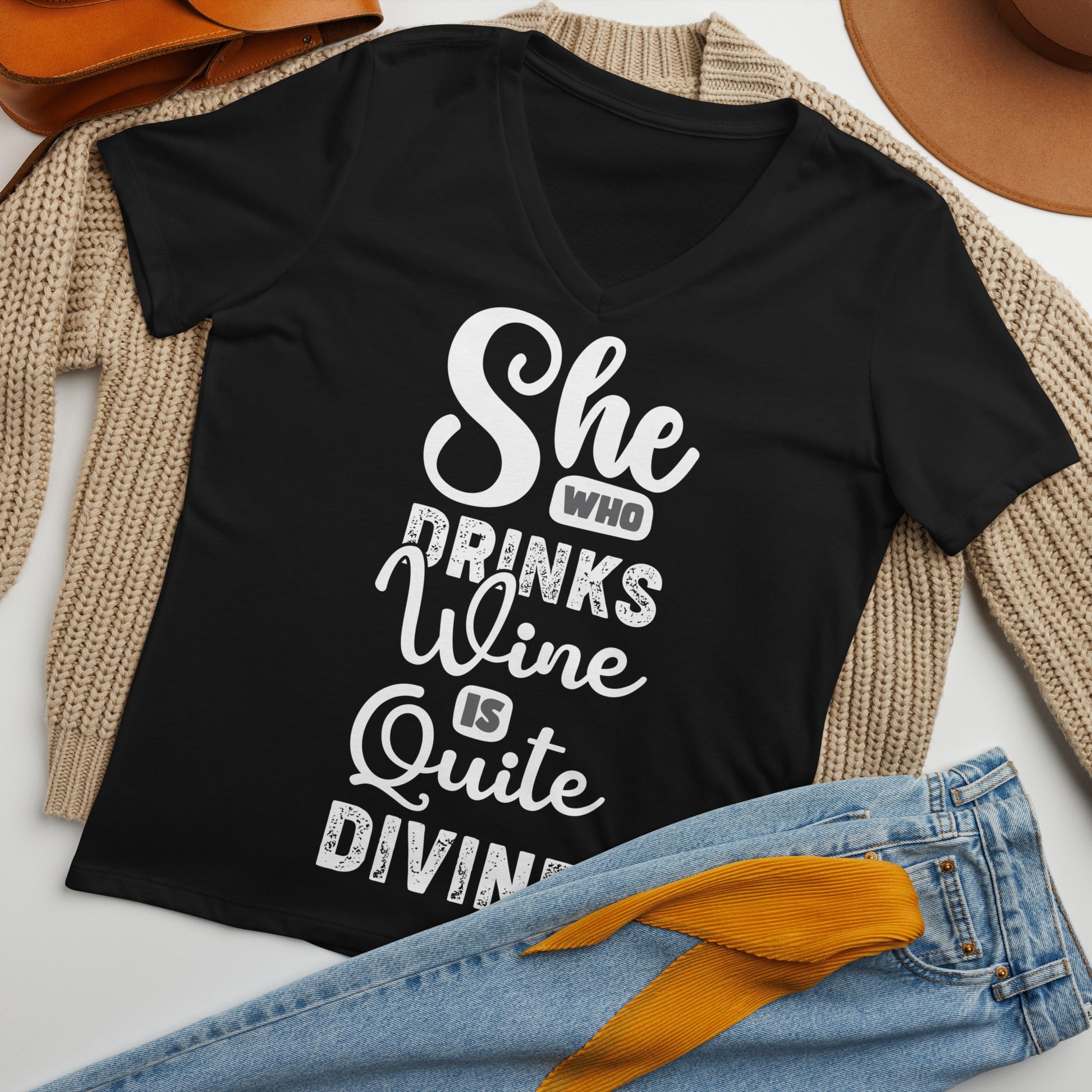 She Who Drinks Wine is Quite Divine Women’s V-neck t-shirt