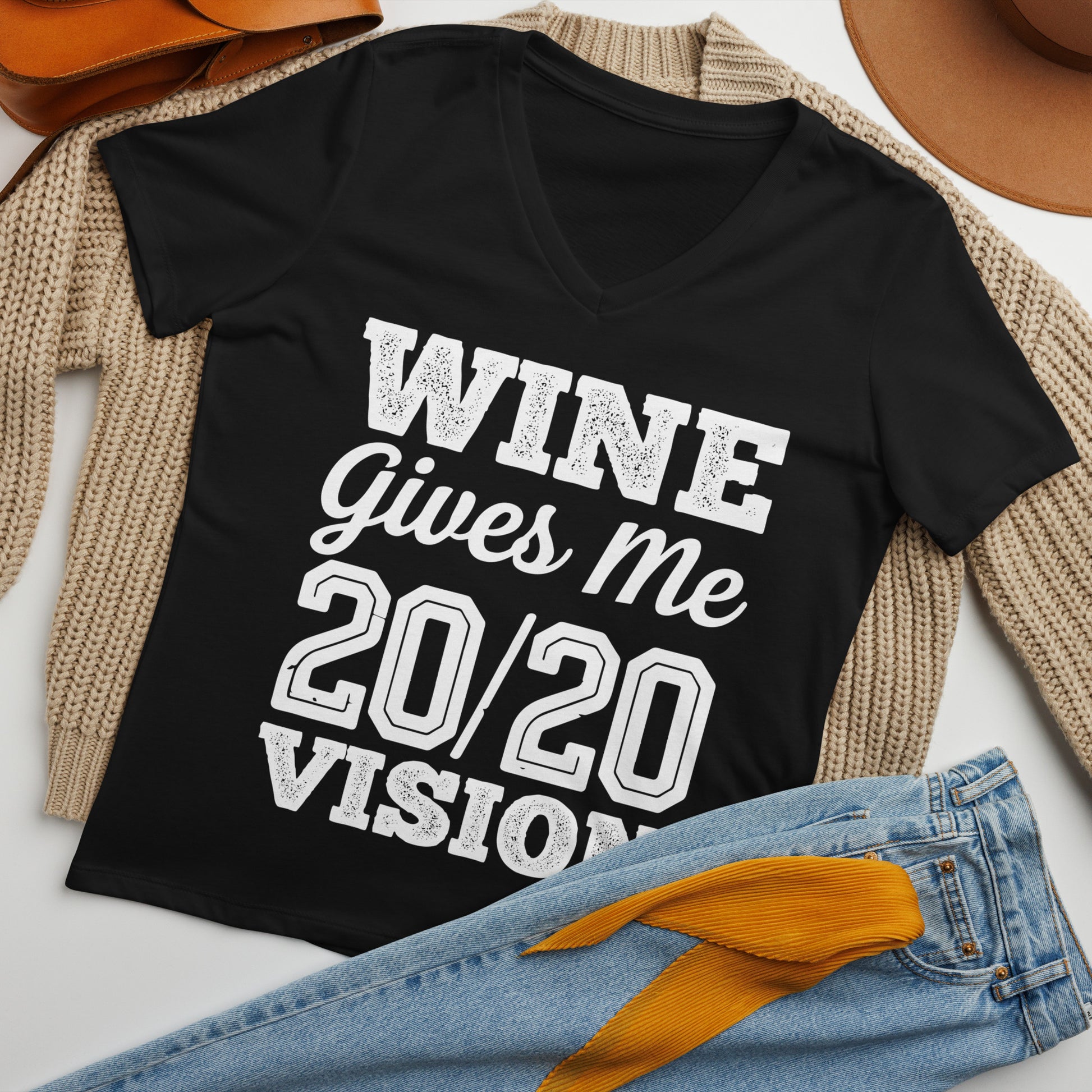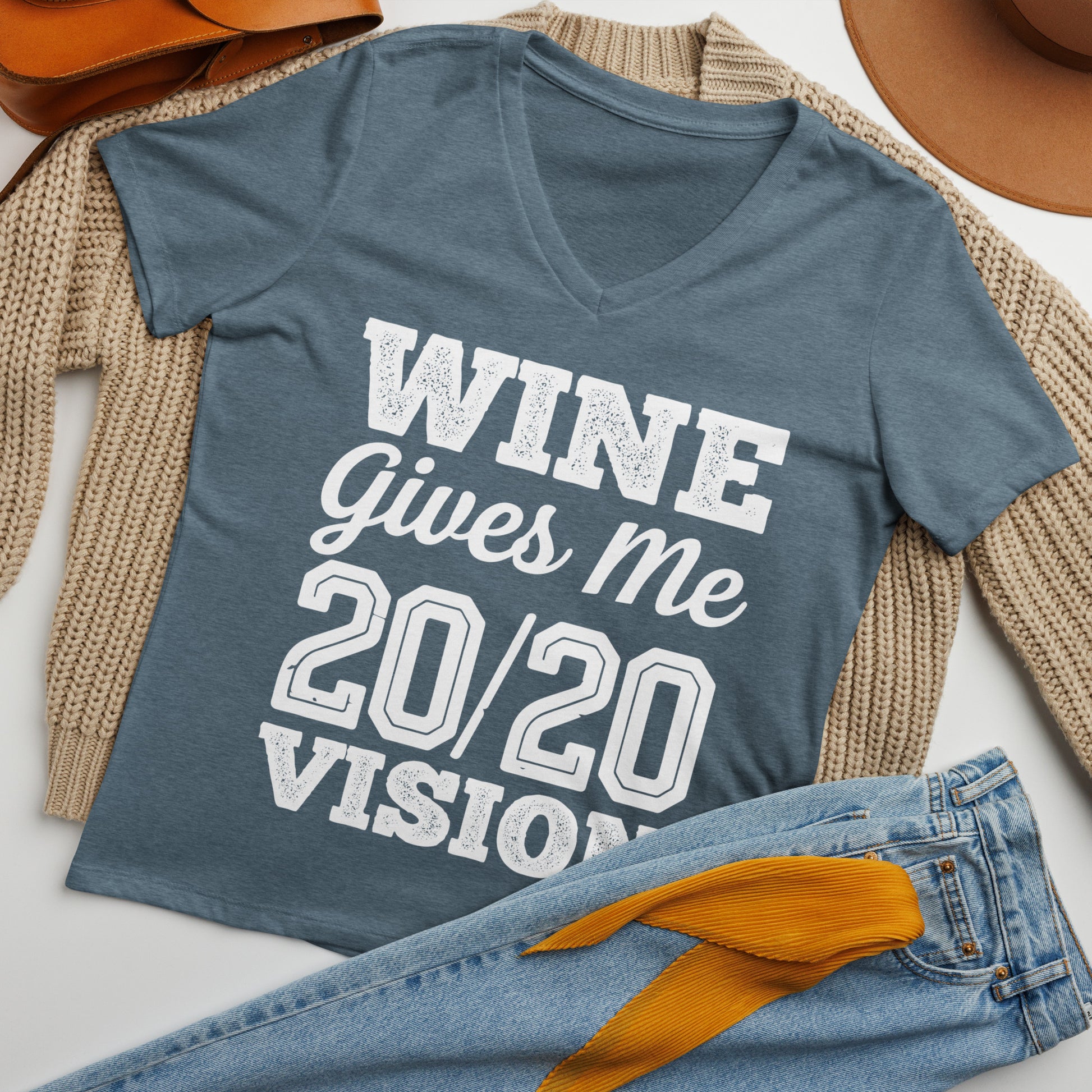Wine Gives Me 20/20 Visio Women’s V-neck t-shirt